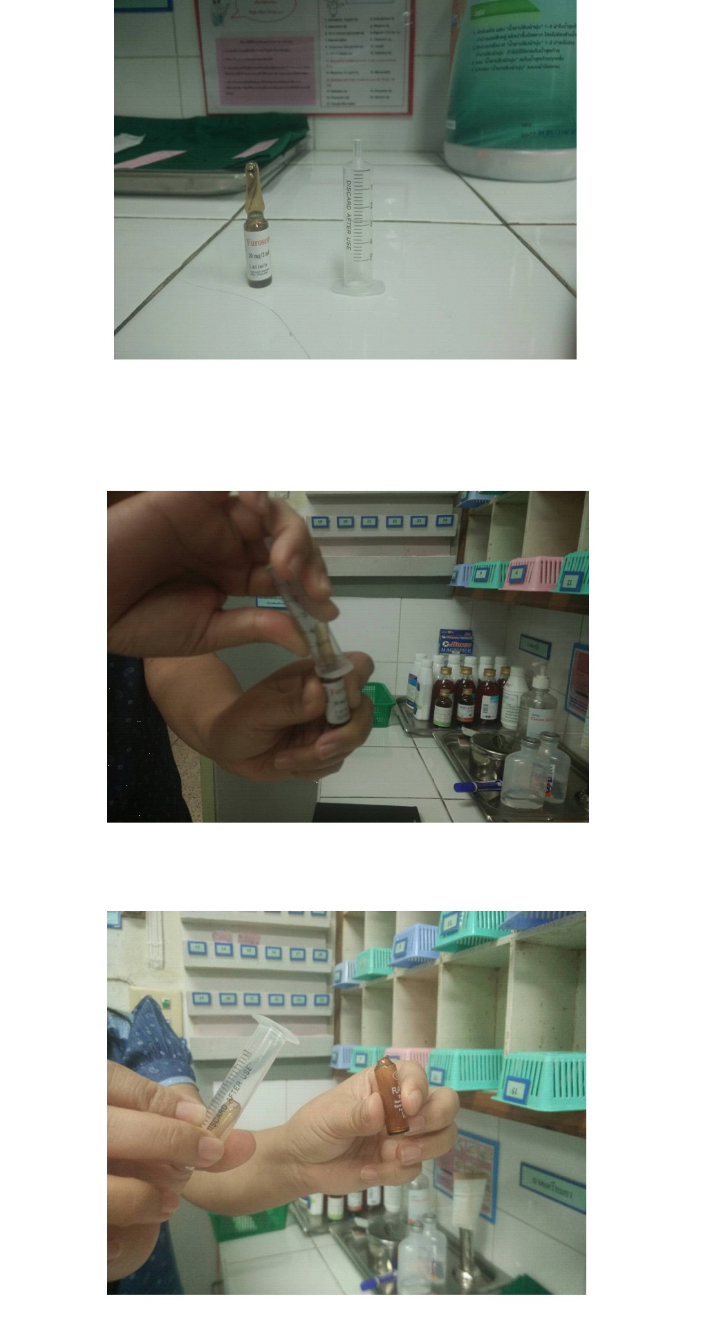 2.ใช้มือข้างที่ไม่ถนัดจัดหลอดยา ส่วนมือข้างที่ถนัดจับปลอก Syringe