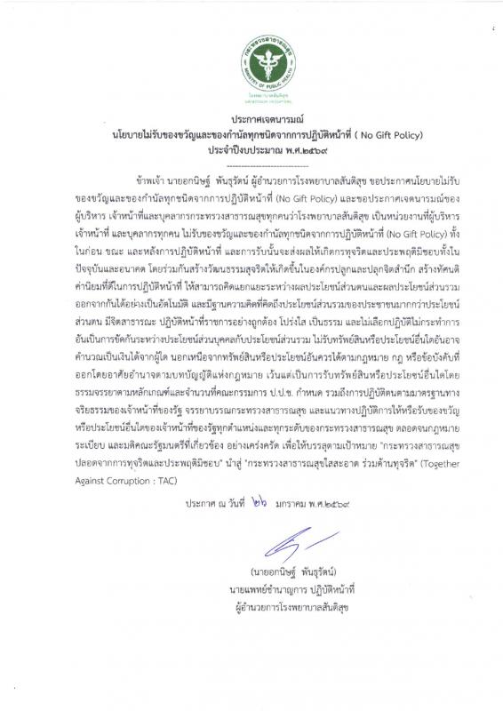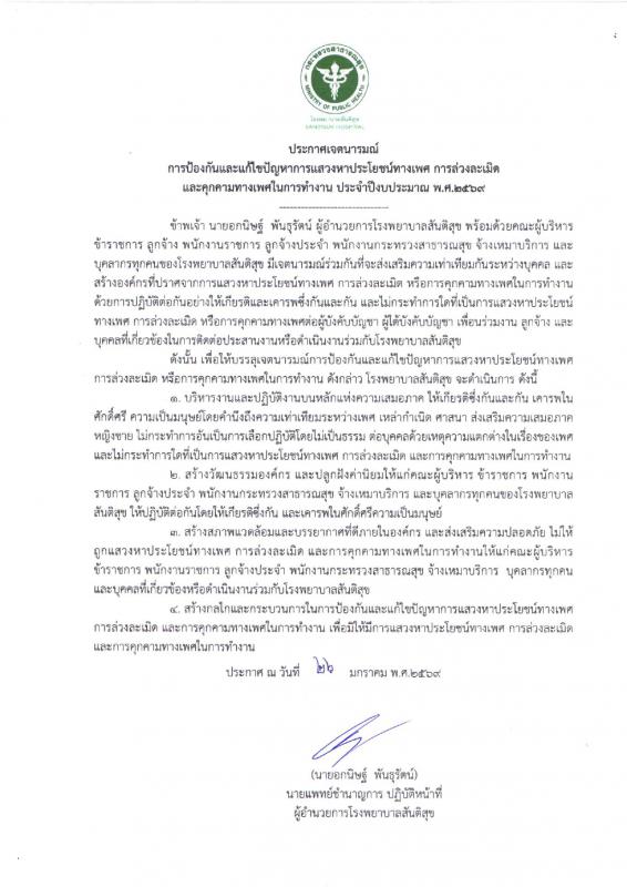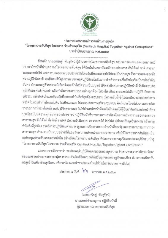 ประกาศเจตนารมณ์ โรงพยาบาลสันติสุข